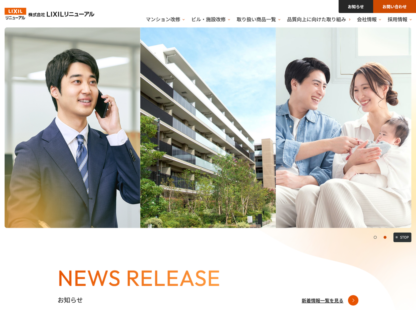 ビル・マンション・施設などの改修工事を手がける株式会社LIXILリニューアル様のコーポレートサイト改修を行いました。静的なHTMLサイトからbaserCMSへの移行を実施。CMS化によって、施工実績やサービス情報の更新が容易になり、運用の効率化を実現しました。