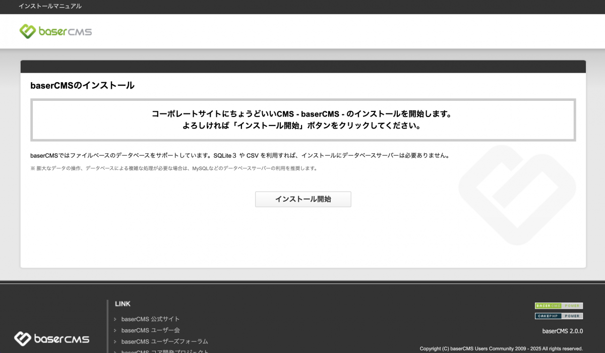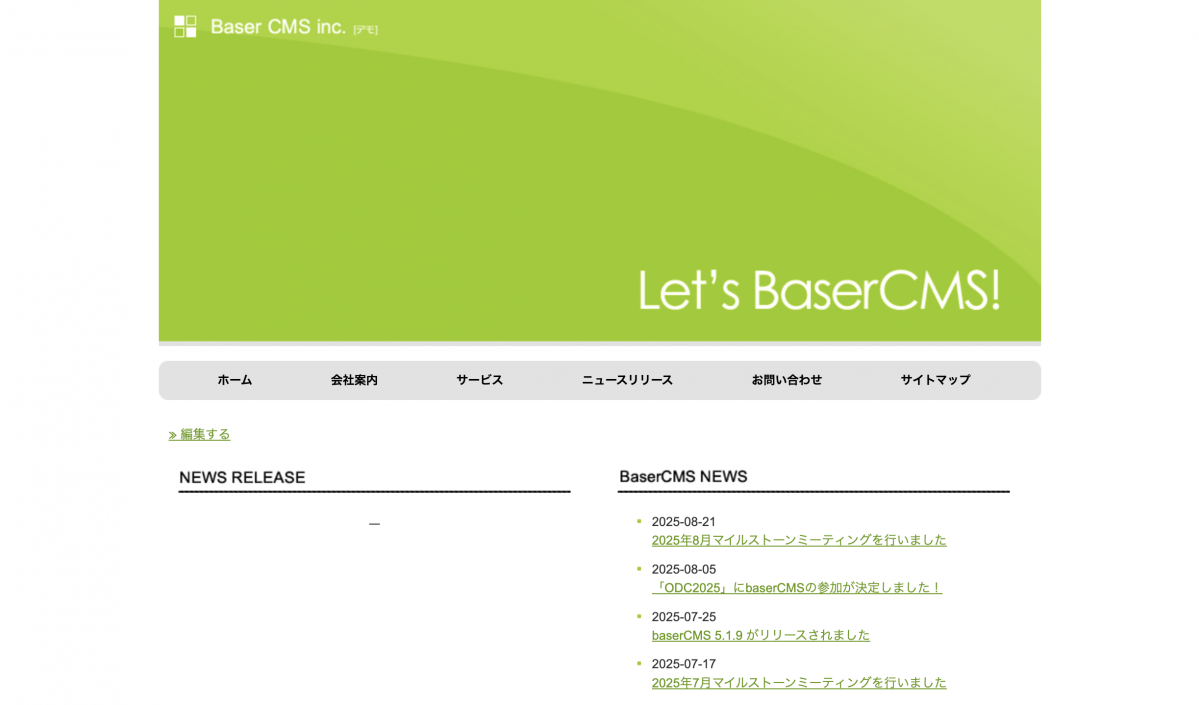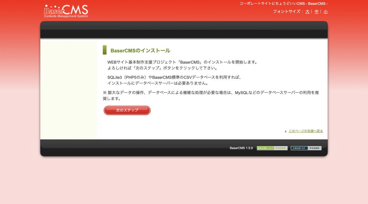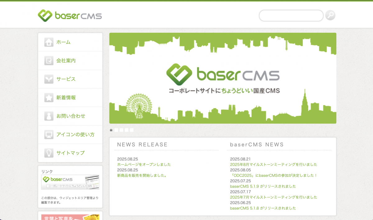赤いですし、表記が現在の正式名称である「baserCMS」ではなく「BaserCMS」になっています。