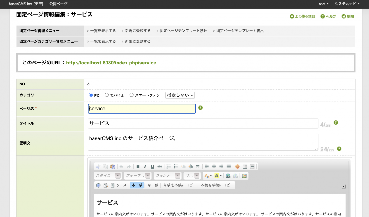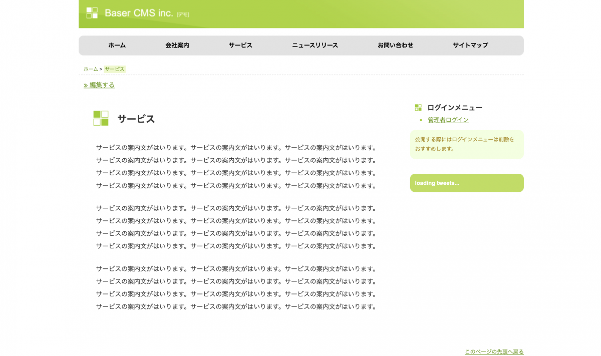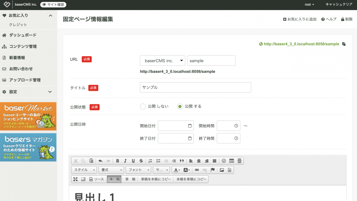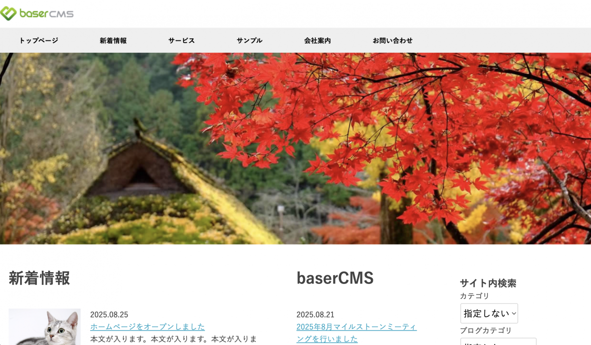 赤いですし、表記が現在の正式名称である「baserCMS」ではなく「BaserCMS」になっています。